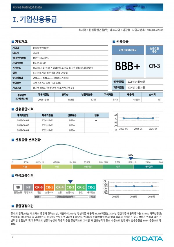2025. 04. 03. 신성종합건설(주) 신용평가등급